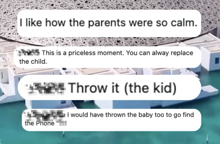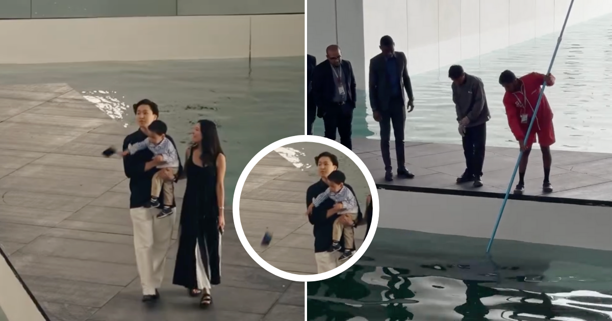 A video filmed at Louvre Abu Dhabi is currently making rounds online after a tiny human decided a brand-new iPhone belonged in the water feature instead.