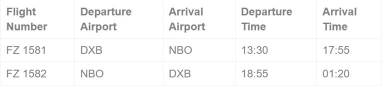Return Business Class fares from DXB to NBO start from AED 4,500 and Economy Class Lite fares start from AED 1,450. Return Business Class fares from NBO to DXB start from USD 2,000 and Economy Class Lite fares start from USD 440.