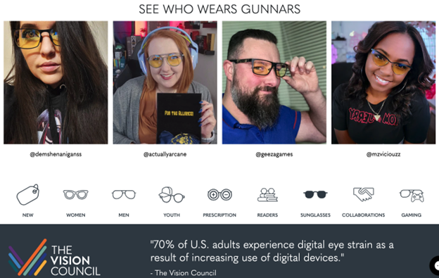 For example, Gunnar carefully chooses to collaborate with influencers active in the gaming industry, knowing that its primary target audience consists of people using blue-light blockers to make late-night game sessions more comfortable.