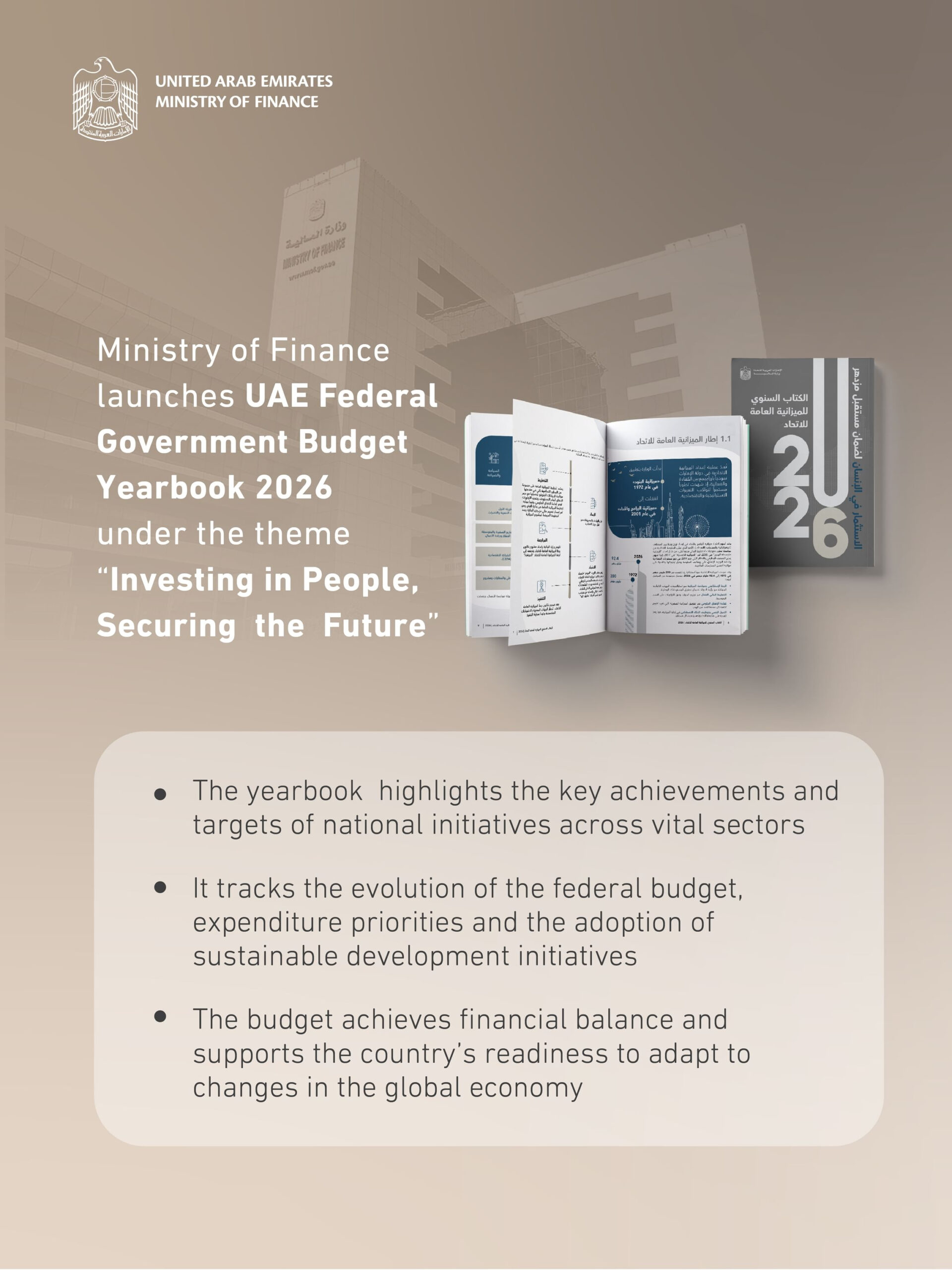 The UAE Ministry of Finance (MoF) has launched the Federal Budget Yearbook 2026 under the theme ‘Investing in People, Securing the Future’.